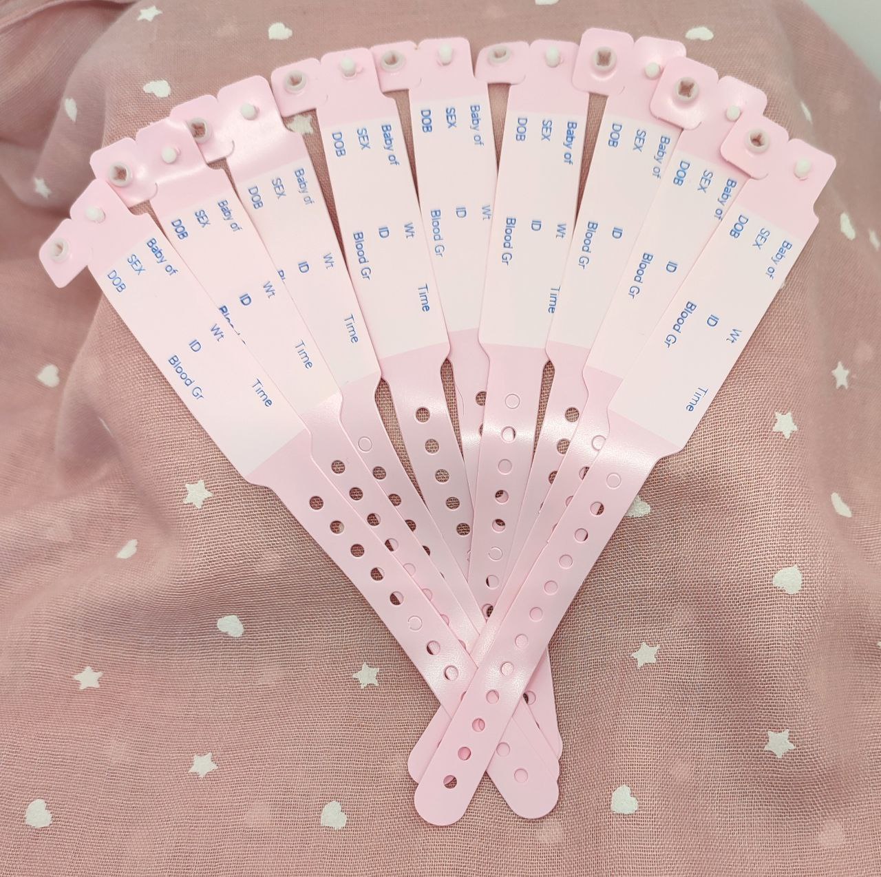 Lote de 10 pulseras rosas de nacimiento
