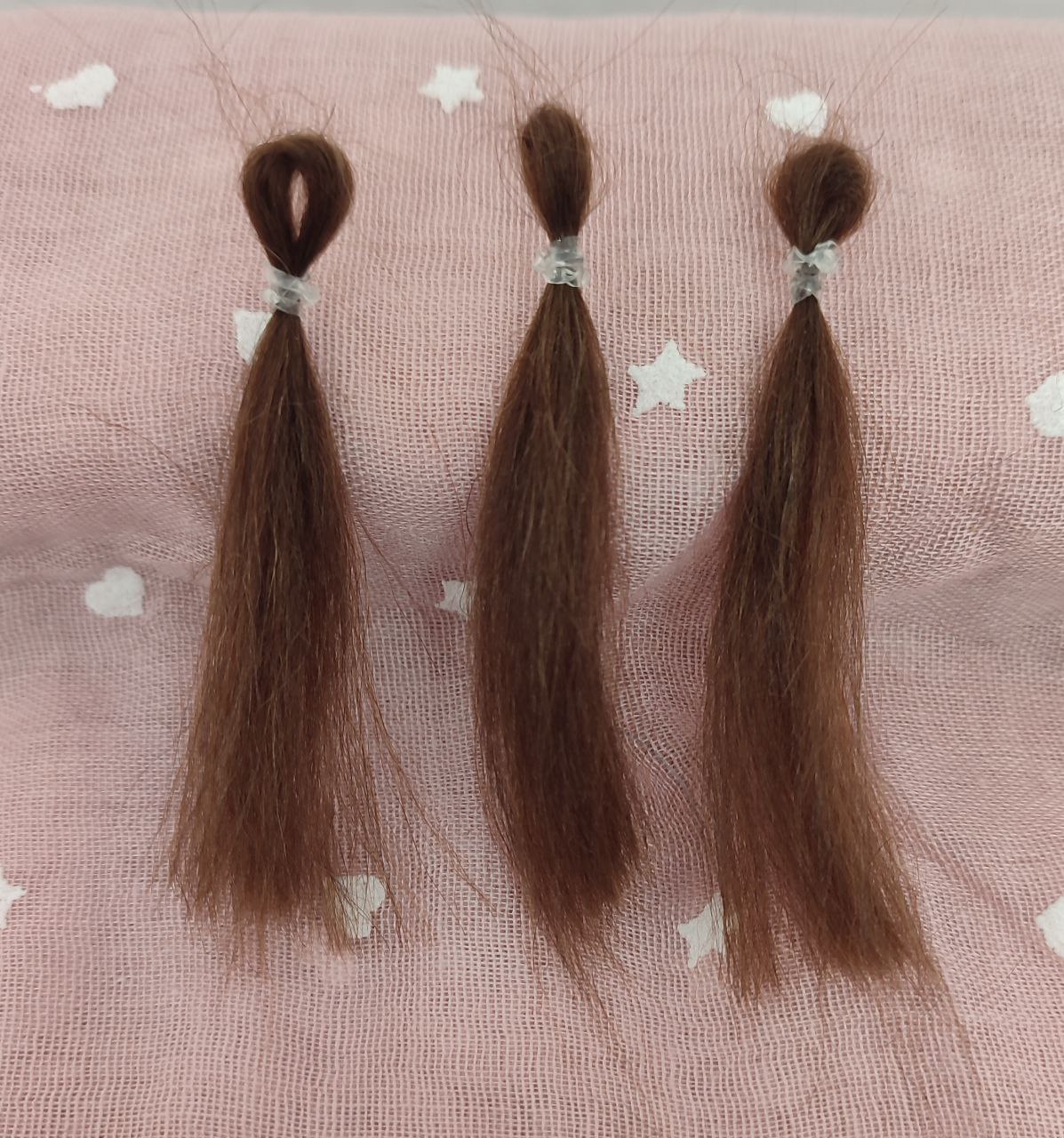 Mechón de pelo castaño para injertar las pestañas de tu bebe reborn
